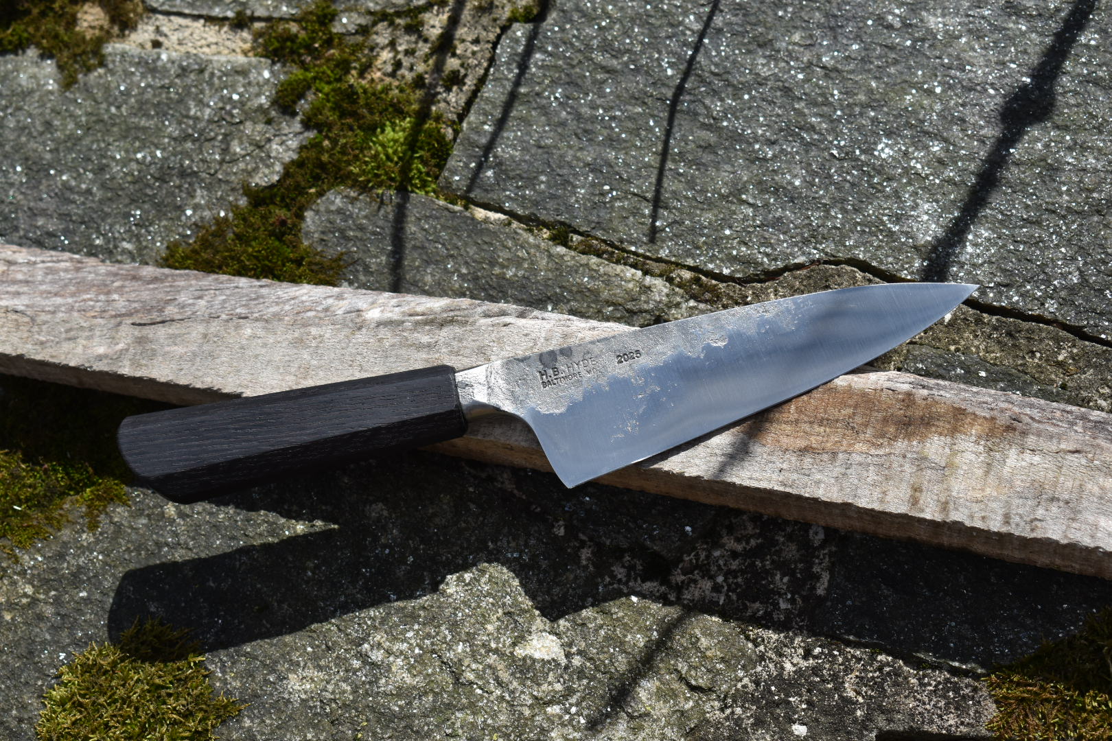 As basic a chef knife as I can make, perfect for a smaller cook or cutting board. I liked to use this size when I worked in cramped professional kitchens.