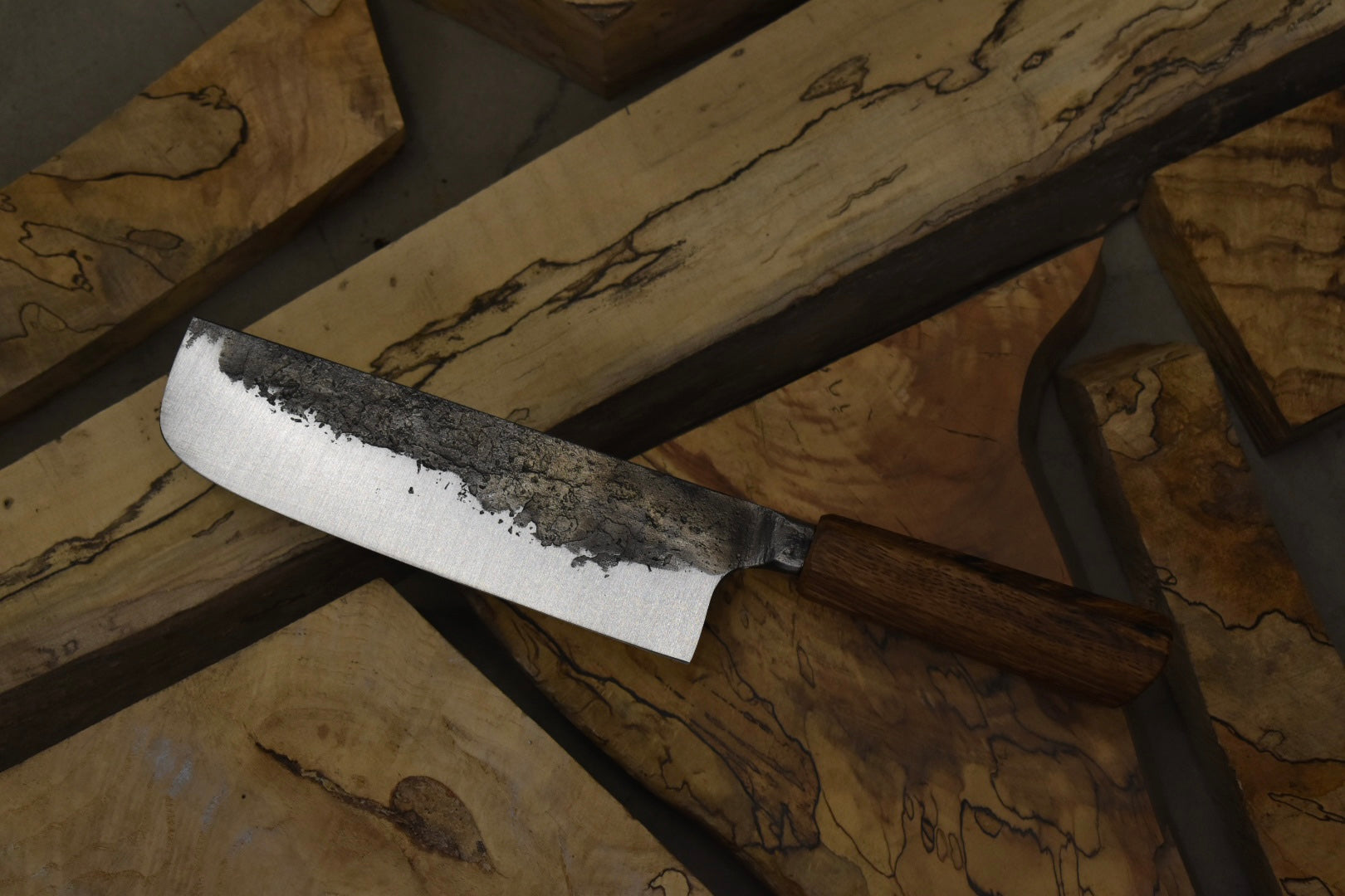 165 x 50mm nakiri with Maryland spalted oak handle.