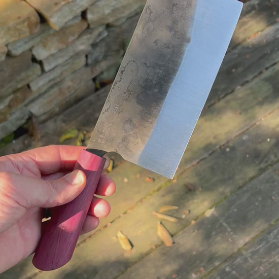 This is my small size. Basically a tall nakiri, tiny (in comparison to the others) but useful!