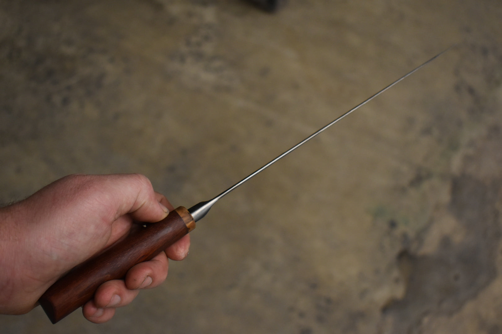 235 x 53mm chef with a spalted tamarind and redheart handle.