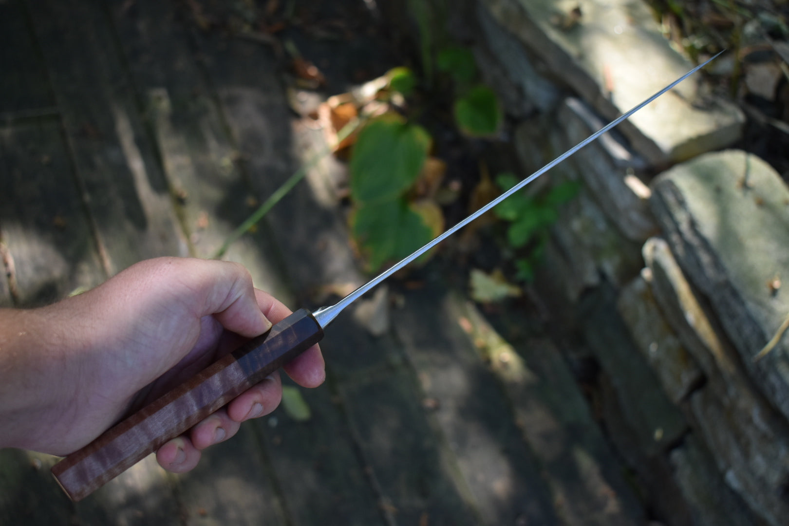 258 x 33mm slicer with a curly walnut and curly maple handle.